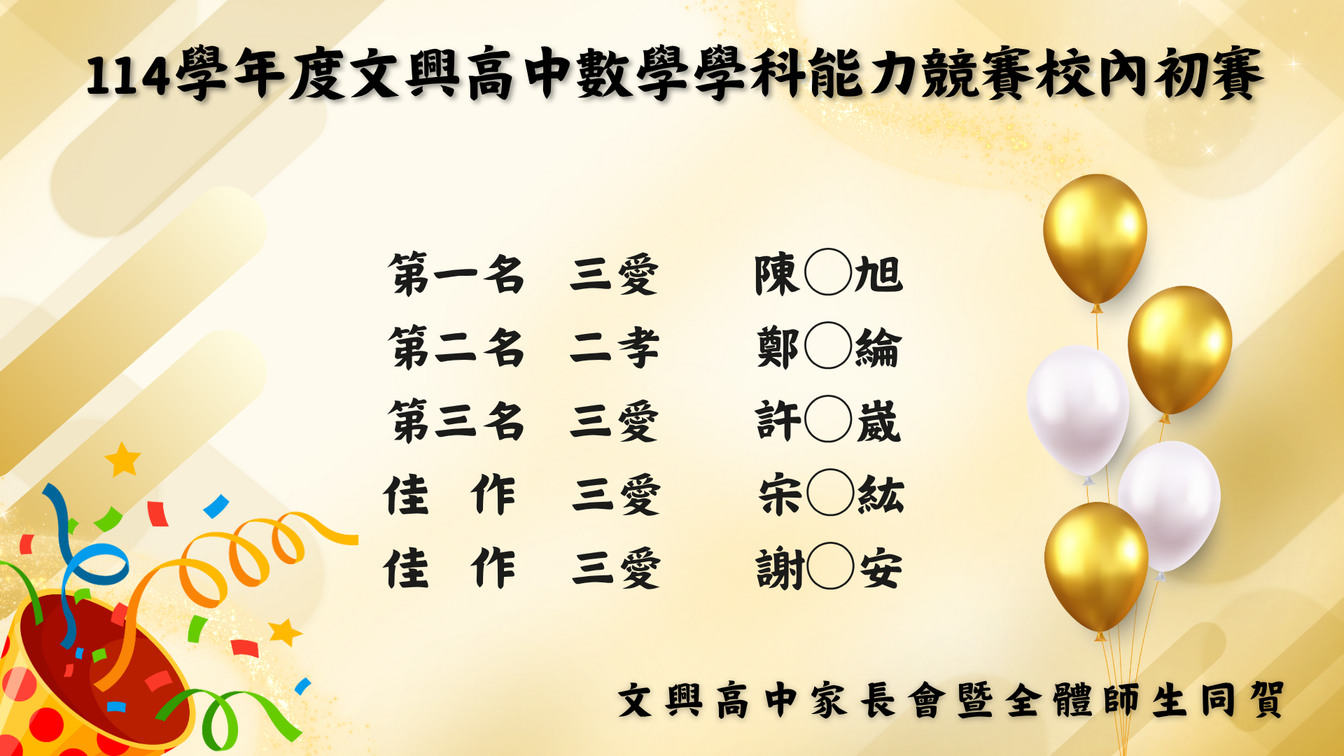 賀!114學年度數學學科能力競賽校內初賽