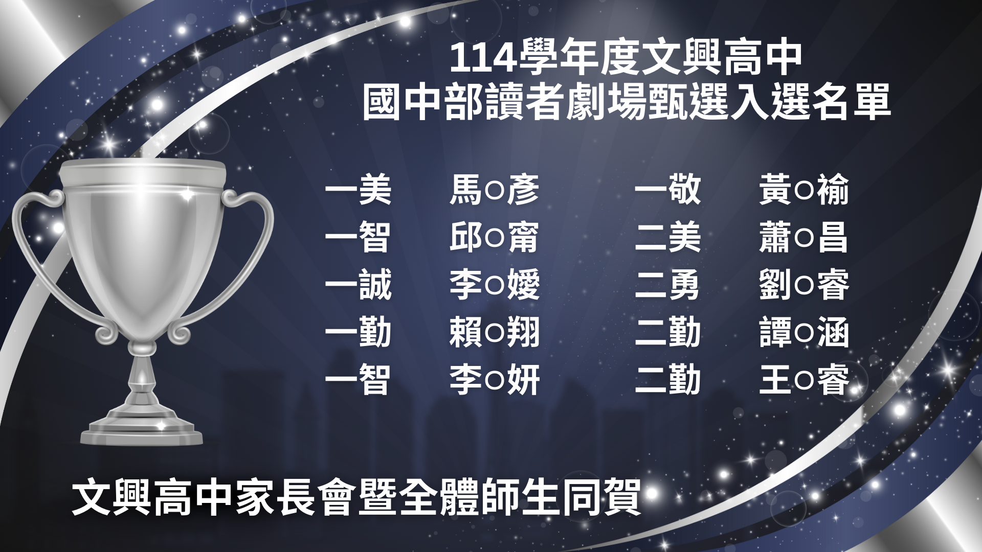 賀!114學年度文興高中國中部校內讀者劇場甄選入選名單