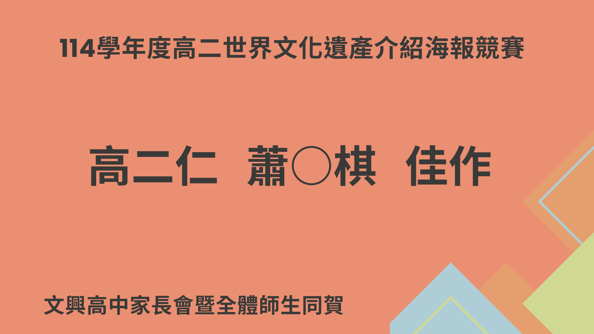 賀!114學年度校內高二世界文化遺產介紹海報競賽