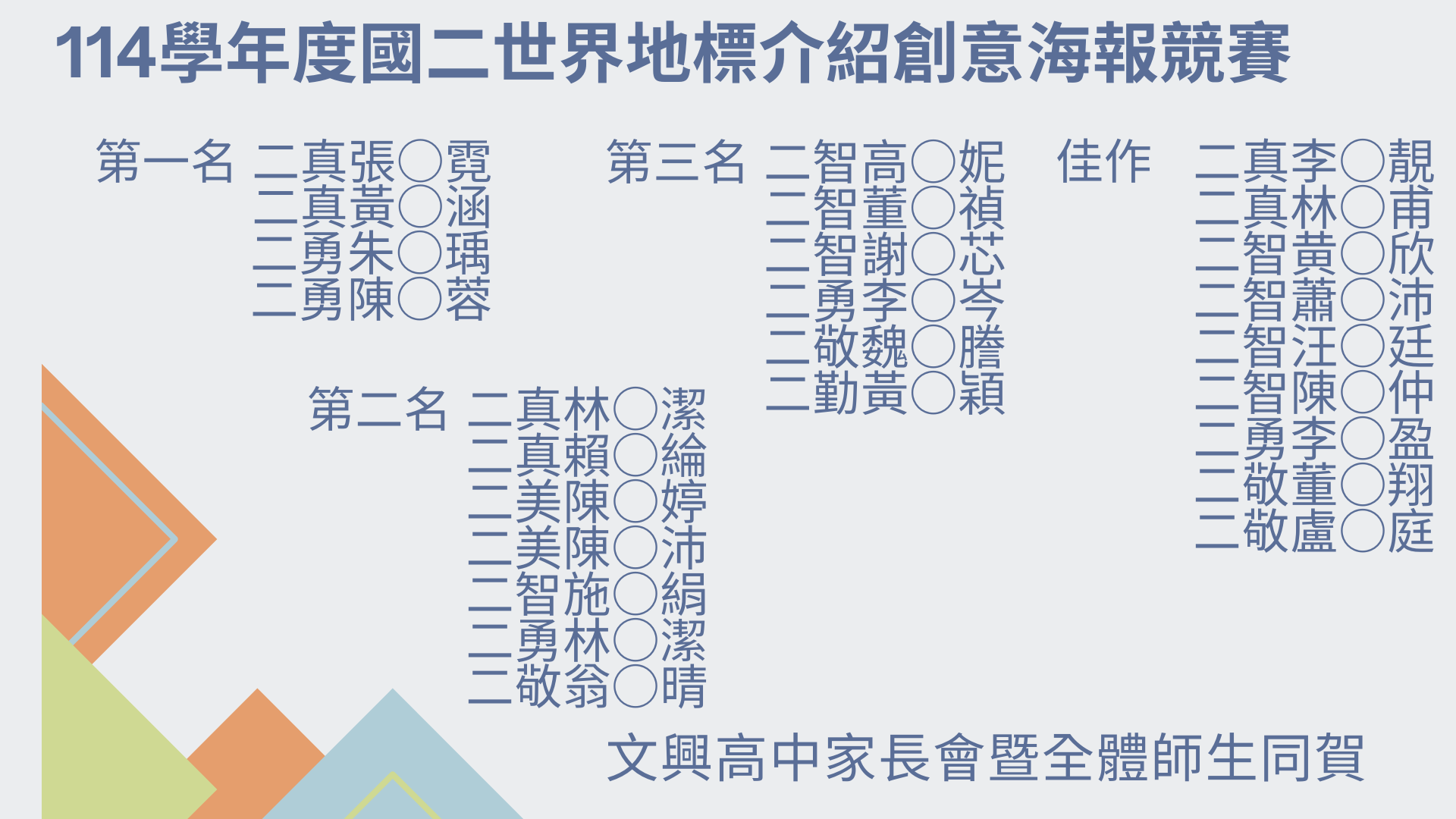 賀!114學年度校內國二世界地標介紹創意海報競賽